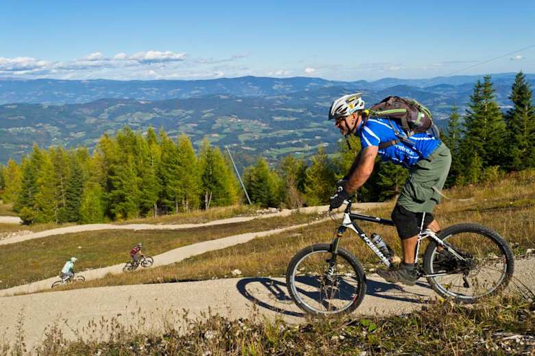 Mit der Petzen-Bergbahn fährt man hinauf zur Bergstation Siebenhütten. Der Trail beginnt nach dem Gasthof Siebenhütten und endet direkt bei der Talstation.