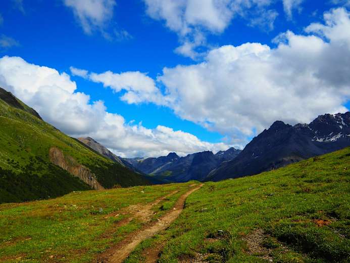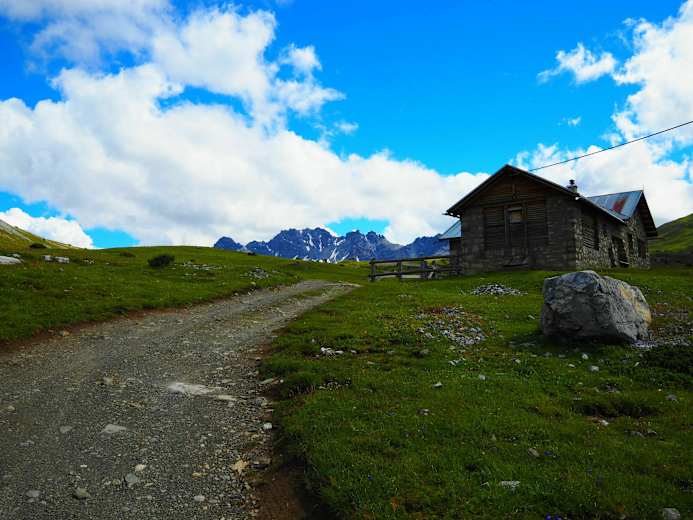 Der Pfad mündet in eine alte Militärstrasse, die zur Alpe del Gallo führt. Weiter auf einem Pfad bis zum höchsten Punkt, Fuorcla del Gal (2.2.60 m), zwischen dem Valdidentro und Val Müstair.