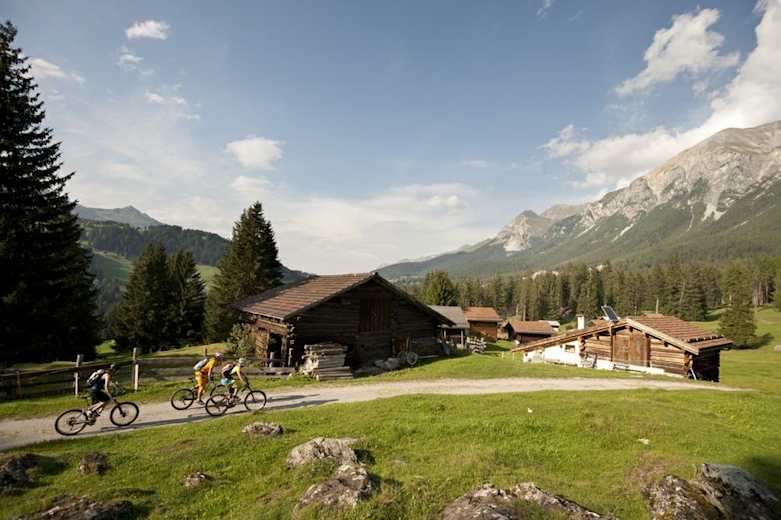 Vorbei an kleine Almhütten. Foto: Lenzerheide Marketing & Support AG Bildergalerie (5)