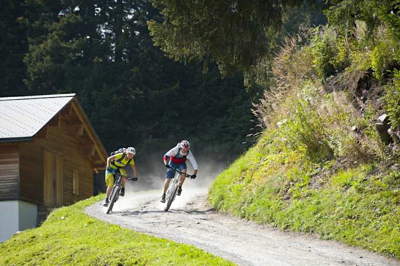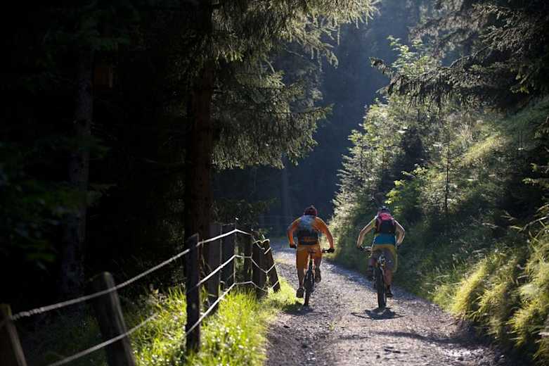Nun rollt man wieder gemütlich talwärts. In Valbella angekommen, führt die Tour auf der anderen Talseite mit sanfter Steigung kurz in Richtung Scharmoin. Die anschliessende flotte Abfahrt durch den erfrischend kühlen Wald führt wieder zurück nach Lenzerheide.