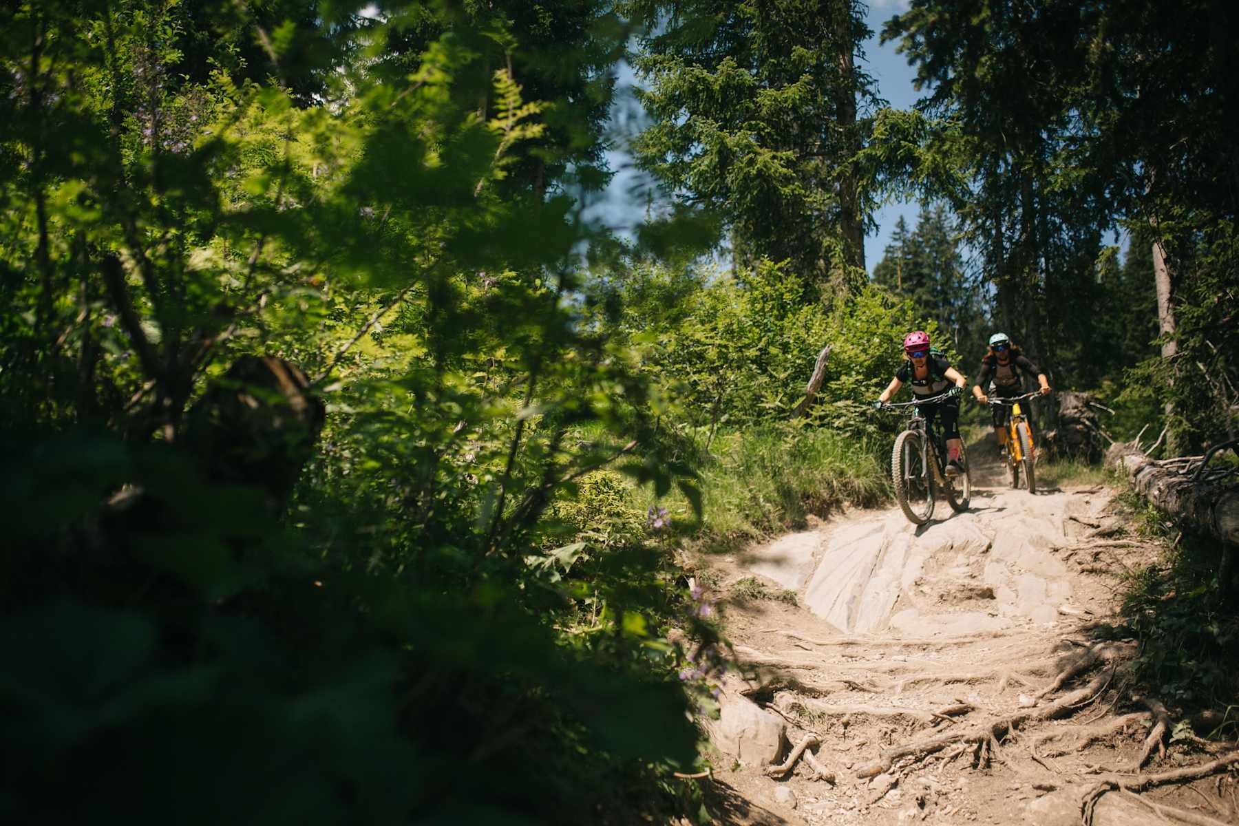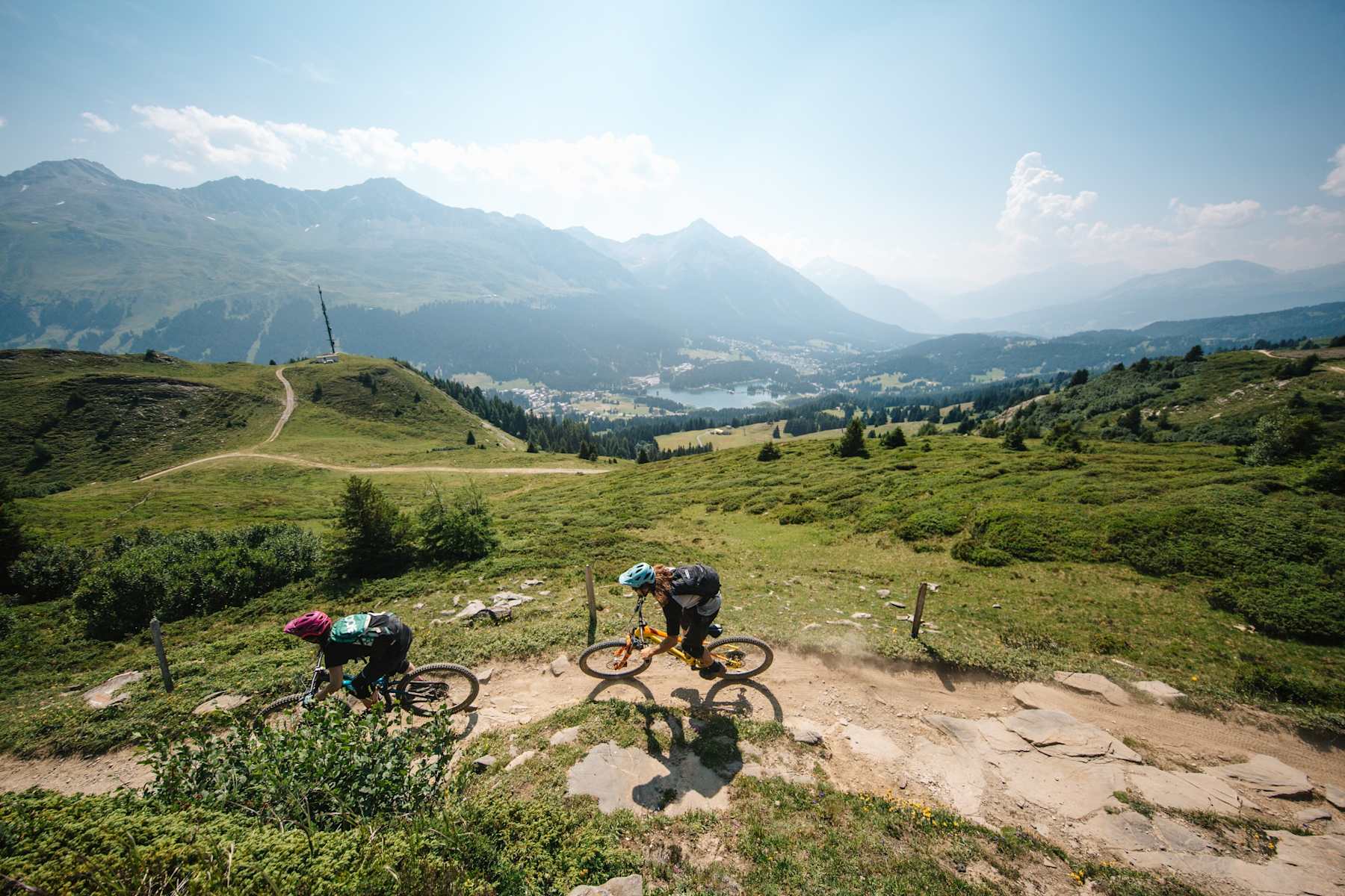 Gemütlich geht es los. Gleich zwei Bergbahnen bringen die Mountainbike hoch zum Piz Scalottas auf 2.321 m. Oben angekommen bietet sich gleich eine Sonderrunde an: Auf einer extra angelegten Bikestrecke geht es hinunter bis zur Mittelstation Tgantieni - der Aufwand lohnt sich, denn das Bikeerlebnis ist fantastisch.