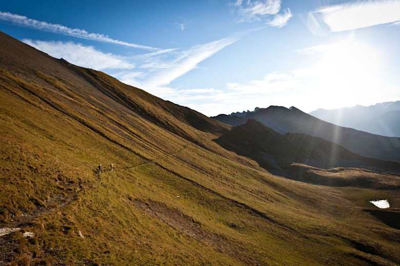 Gestartet wird bei der Talstation der Rothornbahn, welche die Fahrgäste bequem auf den Rothorngipfel auf 2.861 m bringt. Nun geht es los. Auf dem technisch anspruchsvollem Singletrail fährt man Richtung Alp Sanaspans. Kurz bevor man die Alp erreicht, biegt links der Wanderweg Richtung Culmet/Furcletta ab. Von hier aus wird es anstrengend, denn rund 1,5 h Bike tragen steht bevor.