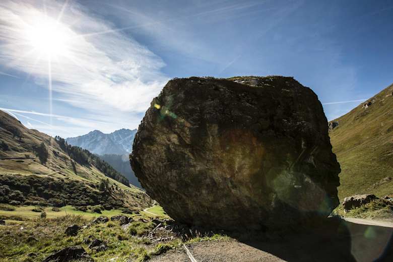 Auf der Tour kommt man auch beim Alpstein, dem größten Findling der Schweiz vorbei, welcher am Wegrand bei der Unteralp zu bestaunen ist. Sehr lohnende Mountainbiketour in der Samnaun Gebirgsgruppe.