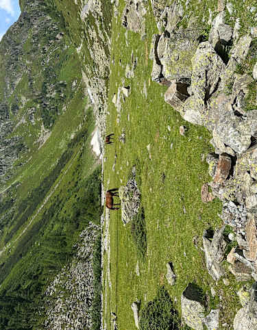 Nun folgt eine kurze Schiebe-Passage bis hinauf auf Jufplaun, ein wunderschönes Plateau oberhalb von der Val Mora. Von Jufplaun geht die Tour weiter zum Pass dal Fuorn, Süsom Givè. Auf diesem Stück muss auch ein Teil geschoben werden. Ansteigend geht die Tour weiter bis zur Alp da Munt, über die Fuorcla Funtana da S-charl wieder zur Alp Astras im Val Tamangur. Von hier wird derselbe Weg gewählt, wie beim Hinweg. Das heißt, nach S-charl, San Jon und hinunter nach Gurlaina bei Scuol.