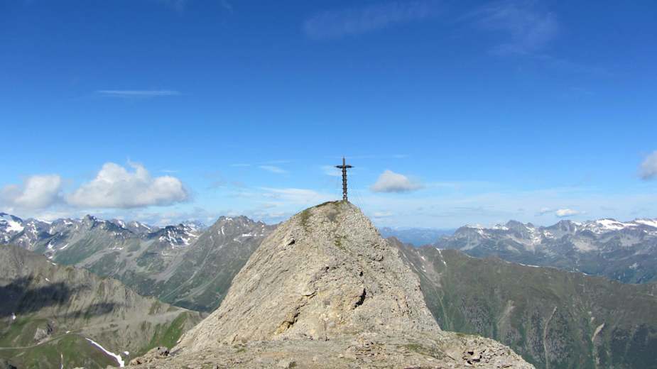 Dem Grenzgrat entlang folgt die Tour steil bergauf zum höchsten Punkt, dem Greitspitz (2.867 m). Bis zum Salaaser Kopf geht es weiter über den aussichtsreichen Grenzgrat mit Blick auf die Samnaungruppe und den Paznauner Gipfeln.