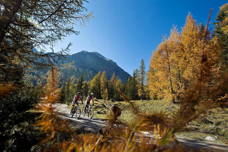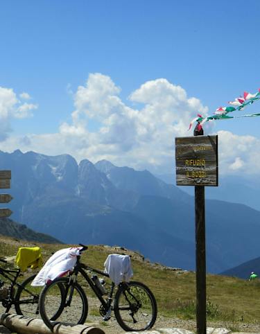 Das folgende Wegstück bis zum Passo di Fraéle (1.952 m) ist nahezu flach. Die Route führt weiter zur Casine di Trela (2.170 m) auf einem Flowtrail über den Passo di Val Trela (2.295 m) nach Ponte delle Capre (1.810 m) auf hartem Schotter bis Livigno (1.805 m), dem Etappenziel.