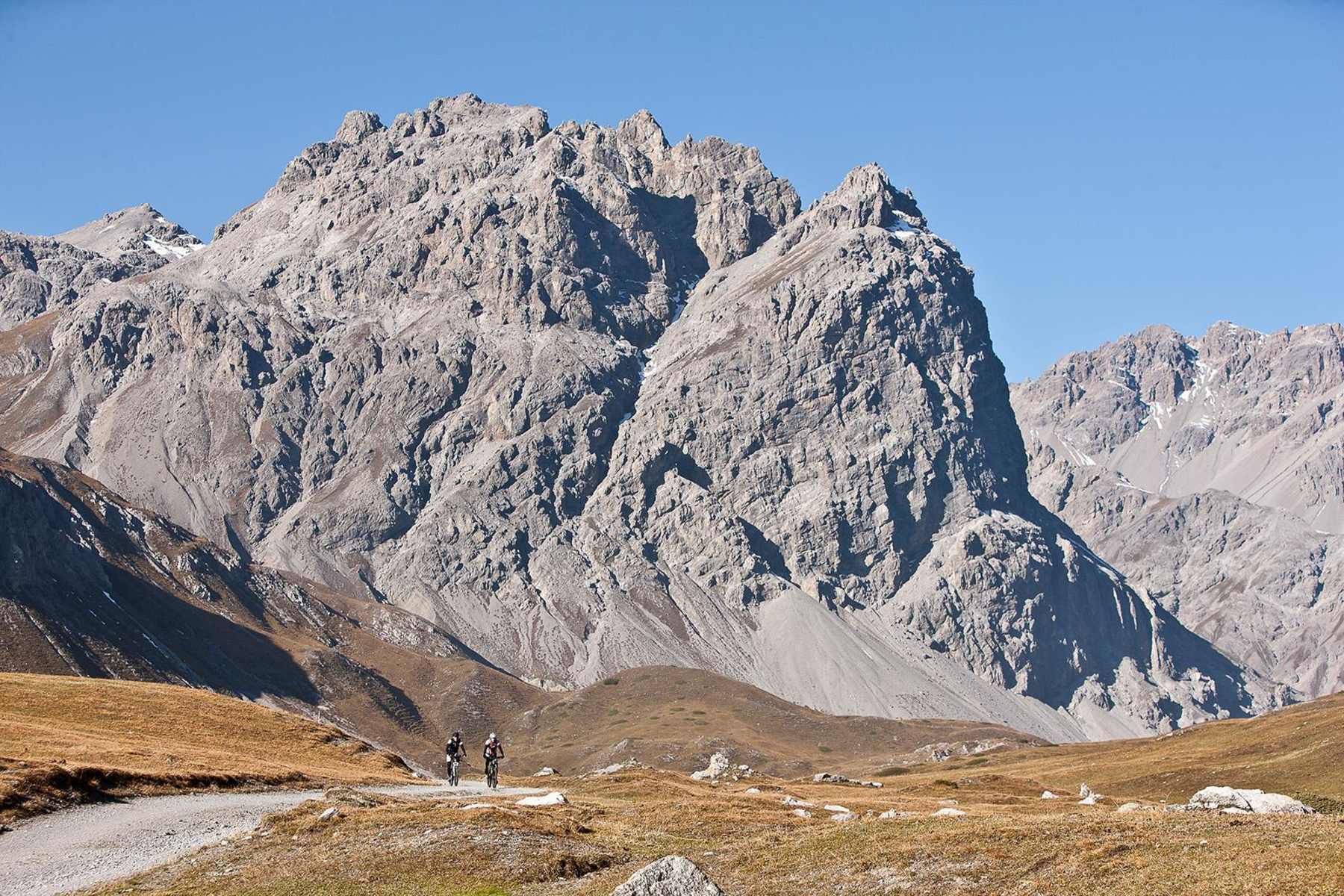 Die zweite Etappe der Alpine Bike-Tour führt von Tschierv im schweizerischen Graubünden talabwärts über Fuldera bis zum Eingang ins Val Vau. Beim ersten langen Anstieg Richtung Döss Radond dominiert der Wald das Landschaftsbild. Die faszinierende Felswand mit dem Wasserfall als Abfluss des Lai da Rims im Süden macht den Aufstieg durch das Val Vau zu einem kurzweiligen und attraktiven Teilstück. Ab Döss Radond befindet man sich im sehr weitläufigen, wilden Val Mora und genießt die entspannte Weiterfahrt zur gleichnamigen Alp, bevor der anschließende Trail bis zum Lago San Giacomo di Fraéle ganze Konzentration fordert. Am nördlichen Seeende zweigt der Weg bald rechts Richtung Alpisella ab , dem zweiten Pass dieser Tour. Eine Pause am Pass entschädigt ebenso für die Strapazen des Aufstiegs wie die anschließende Abfahrt zum Lago di Livigno.