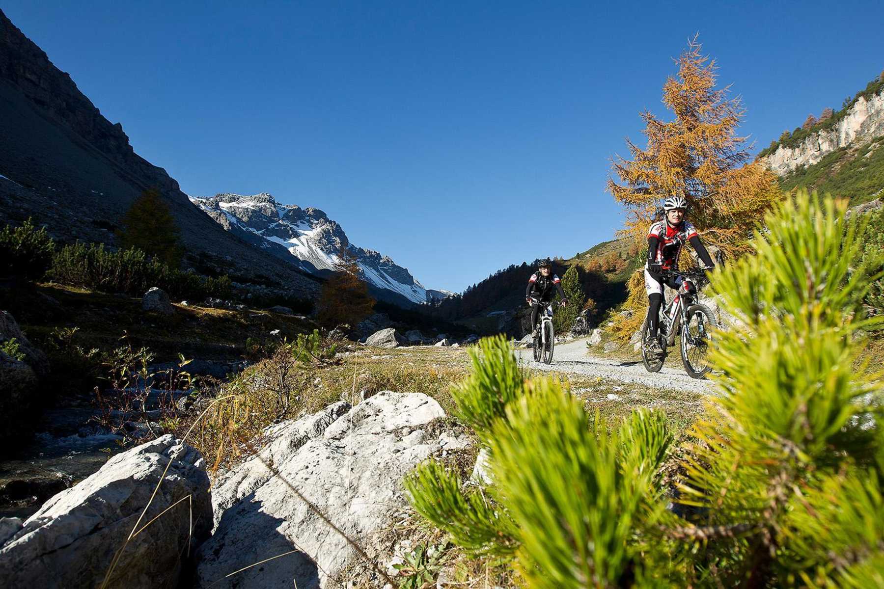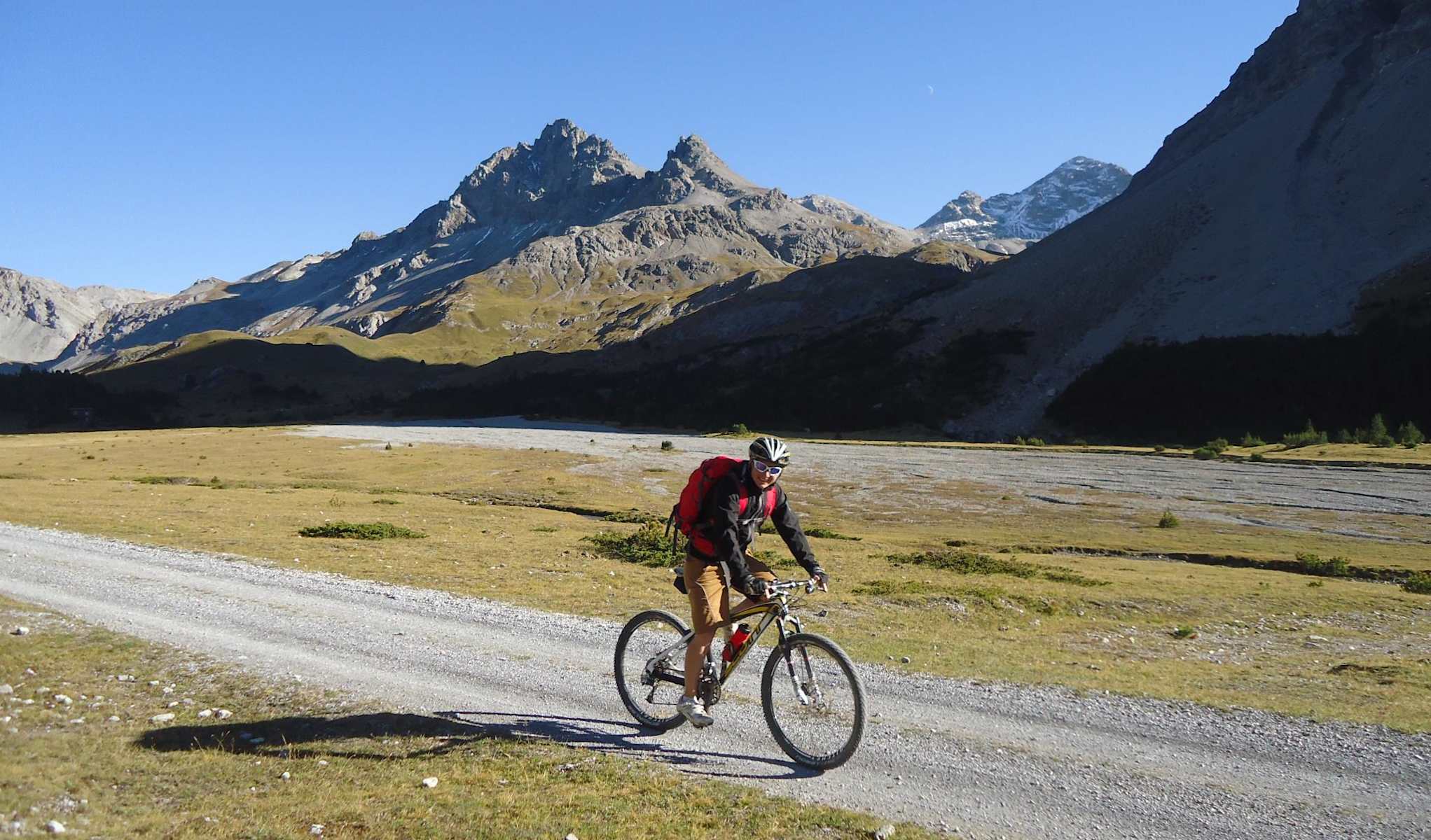 - Die Tour führt wunderschönen Bächen entlang. - Foto: Andrea Badrutt, Chur, Graubünden Ferien  - Aufstieg durch das Val Vau zum Döss Radond - Foto: Marin Platter, Nationalpark Bike-Marathon  - Moderate Forststraßen in Mitten mächtiger Berglandschaft - Foto: Cordula Seiler, Graubünden Ferien - normierte Touren  - Vorbei an vielen kleinen Dörfern - Foto: Cordula Seiler, Graubünden Ferien - normierte Touren  - Die mächtigen Berger sind stetiger Begleiter. - Foto: Andrea Badrutt, Chur, Graubünden Ferien  - Trail zwischen Alp Mora und Passo Val Mora - Foto: Niculin Meyer, Graubünden Ferien - Bildergalerie (6)
