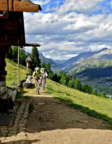 Von der Alp Astras führt die Tour dann über den Pass da Costainas (2.251 m) runter zur Alp Champatsch (2.087 m), ebenfalls mit Verpflegungsmöglichkeit, und weiter auf einer Forststraße bis nach Lü auf 1.192 m. Von Lü folgt die Bike-Tour dem Singletrail „Sena val Müstair" bis nach Müstair.