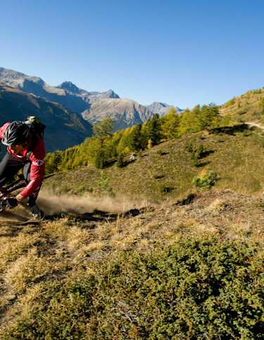 Die dritte Tagesetappe der Uina-Bernina Bike-Tour bietet unterschiedlich anspruchsvolle Trails, eine lange Abfahrt nach Poschiavo und die anschließende Bahnfahrt mit dem Bernina-Express zurück auf den Pass. Die letzten 20 km rollt man durch das Oberengadin bis zum Etappenziel in S-chanf und verarbeitet entspannt die starken Eindrücke des Tages.