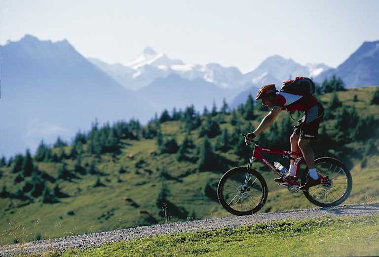 Schöne Mountainbike-Tour in der Ferienregion Nationalpark Hohe Tauern in Salzburg. Ausgehend von Mülbach führt die Route auf alten Güterwegen und befestigten Wegen bis zur Mittelstation der Panoramabahn auf dem Pass Thurn. Auf der ganzen Tour wird man mit imposanten Ausblicken auf die umliegende Bergwelt der Kitzbüheler Alpen belohnt.