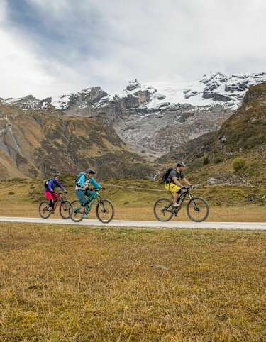 Die flotte Talfahrt verläuft entlang dem Wanderweg (bitte auf Wanderer Rücksicht nehmen) oder entlang der Alpstraße zurück ins Tal fahren.
