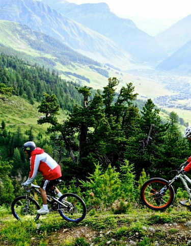 Danach führt die Tour durch den Wald und weiter mit Blick auf das Schloss Tarasp nach Sparsels bis unterhalb des Mot da la Crusch. Die Besichtigung des berühmten Schlosses ist hier ein Muss. In rassiger Abfahrt geht es danach zurück nach Vulpera.
