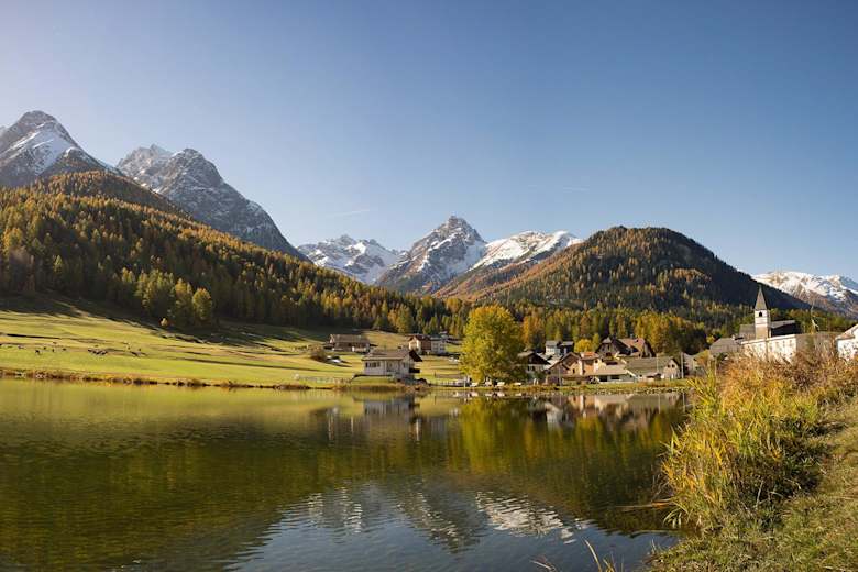 Schöne Mountainbike-Tour in der Sesvenna-Gruppe in Graubünden: Auf dieser Rundtour, die den ambitionierten Radler auf 1.647 m hinauf führt, geht es durch die verschiedenen Tarasper Weiler Vulpera, Florins, Fontana, Sparsels, Chaposch, Avrona und Valatscha mit alten authentischen Engadiner Häusern. Farbige Lärchenwälder und Moorlandschaften runden dieses Kurbelerlebnis ab.
