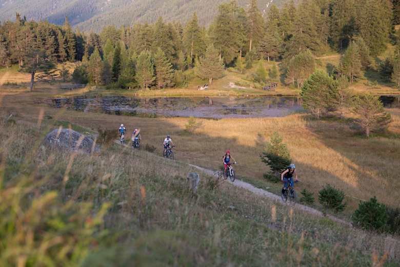 Singletrail-Süchtler aufgepasst: Auf dieser sportlichen Mountainbike-Runde in der Sesvenna-Gruppe in Graubünden geht es hinauf zum malerisch gelegenen Bergsee Lai Nair. Die Tour ist weder lang noch mit vielen Höhenmetern gespickt und führt bis auf 1.561 m hinauf. Highlight ist mit Sicherheit der knackige Singletrail am Schluss.