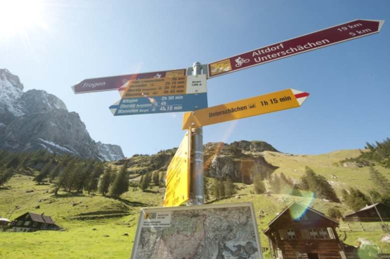 Eine mittellange, konditionell anspruchsvollere Biketour führt durchs Schächental zur saftig grünen Alp Brunni unter der felsiger Umrahmung der größten Kalkwand Europas. Durch typische Streusiedlungen führt die Tour von Altdorf ins Brunnital und dem Alpbeizli Trogenalp (1.508 m). Eine lohnende Tour für einen Tagesausflug für Mountainbiker an der Klausenpassstraße im Kanton Uri.