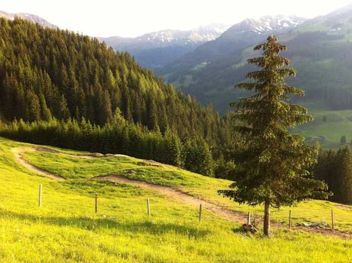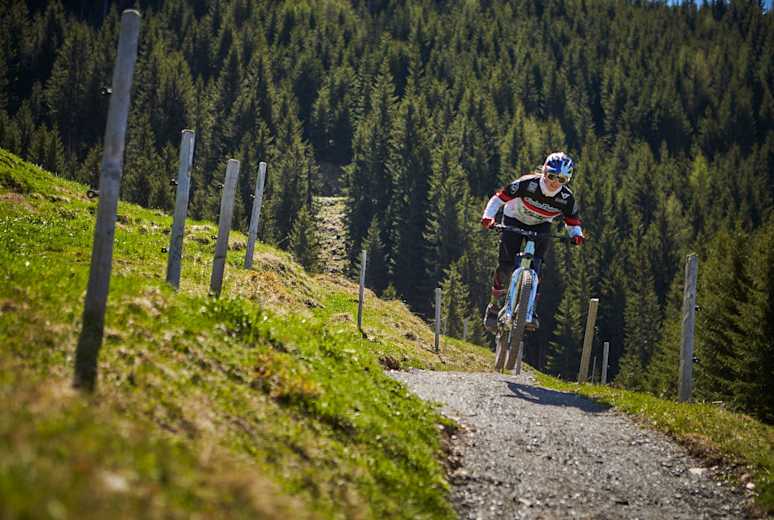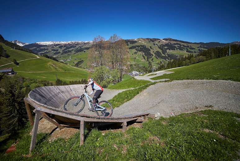 Dieser leichte und schöne Singeltrail in Saalbach Hinterglemm in Salzburg schlängelt sich über freie, aussichtsreiche Almböden und idyllische Wiesenlandschaften. Dabei wir die Topographie des Geländes super ausgenützt und viele kleine Tables, Turns und Wellen sorgen für reichlich Spaß.