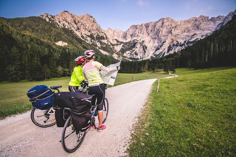 Vom Bergsteigerdorf Jezersko am Fuße der Steiner Alpen in Slowenien führt eine schöne Bike-Tour in das Ravenska Kočna Tal und hinauf zur Štular Alm, Štularjeva planina.