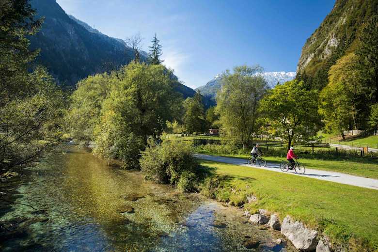 Schon am Beginn der Tour in Bad Reichenhall könnte man zu Trödeln beginnen, ist doch die Kurstadt reich an Sehenswürdigkeiten. So kommt man etwa am königlichen Kurgarten und Kurhaus vorbei, bevor man entlang der Saalach gemütlich dahinradelt.