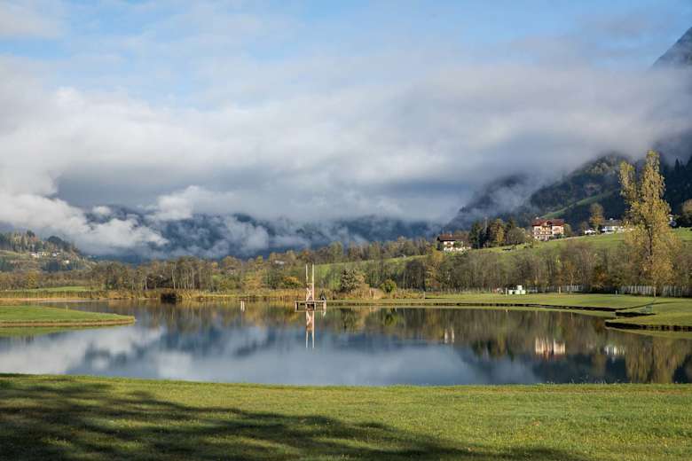 Bei Klammstein verlässt man den Tunnel und nun geht es recht gemütlich weiter durch das schöne Gasteinertal. Der Radweg ist dabei so angelegt, dass man immer wieder durch die Ortschaften fährt, an Gasthäusern vorbei kommt und auch an der ein oder anderen Sehenswürdigkeit. Zum Beispiel kann man in Bad Hofgastein das Weitmoser Schlössl und die Thermalwasser-Badeseen der Alpentherme besuchen.