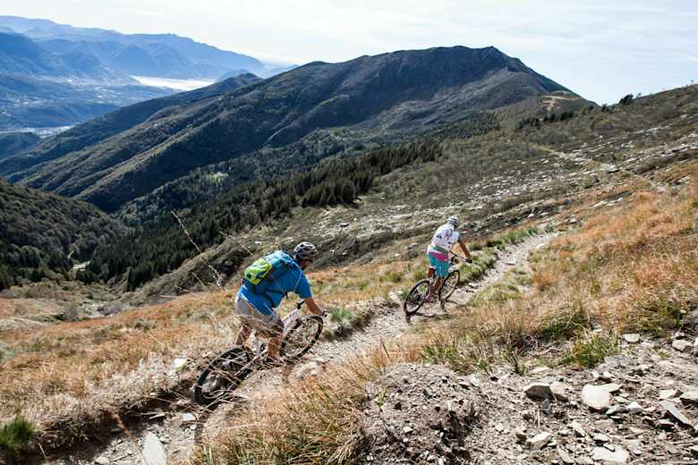 Man folgt dem anspruchsvollen Trail, je nach Fahrkönnen stellenweise stossend, bis kurz unterhalb des Gipfels vom Monte Tamaro und zweigt hier auf den kurvenreichen Pfad zur Bassa di Indemini ab.