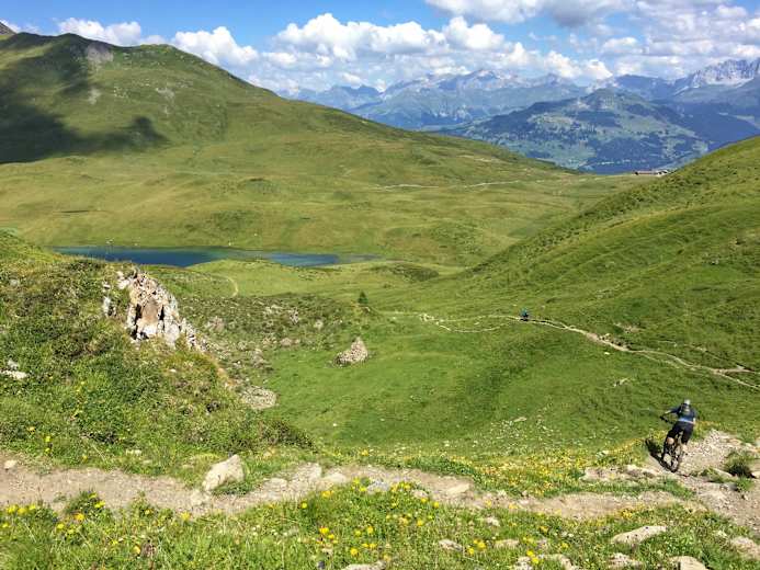 Epischer Singletrail in den Plessur-Alpen Graubündens, der auf 16 km Länge und 1.900 Tiefenmetern wirklich alles bietet, was das Bikerherz begehrt: Hochalpines Gelände, idyllische Alpwiesen und anspruchsvolle Waldabfahrten. Eine der schönsten und längsten Mountainbiketouren im Bikerevier Davos-Klosters.