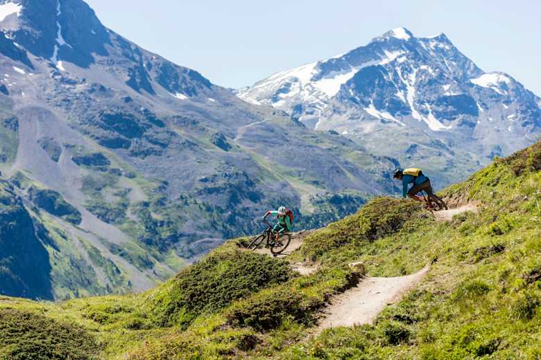 Die Flow Trails bieten sich an als Aufwärmrunde vor der Tour oder als krönenden Abschluss nach einer der vielen Mountainbiketouren auf Corviglia.