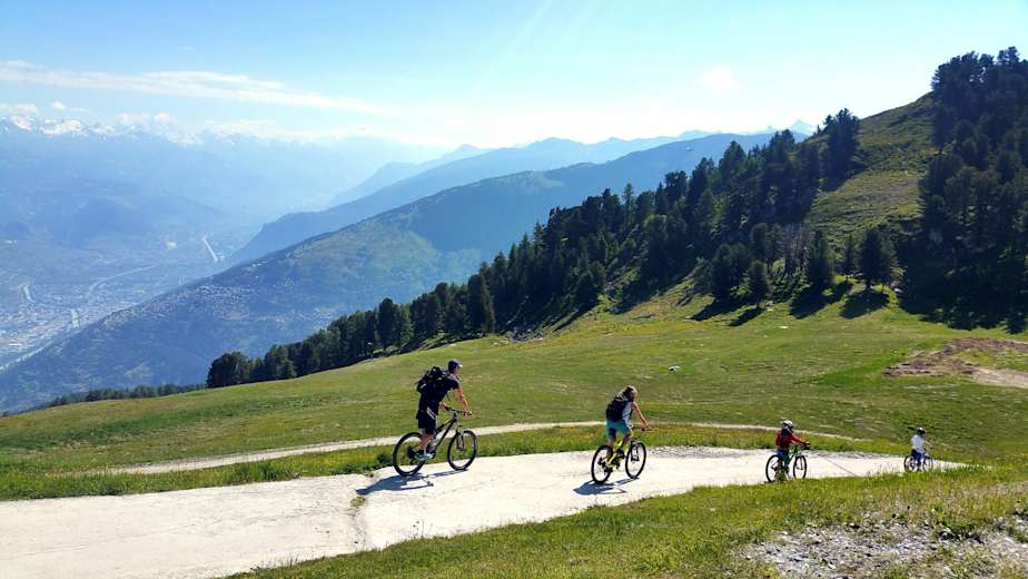 Vom Tracouet (2.200 m) führt diese familienfreundliche Mountainbike-Tour über Sofleu nach Siviez. Neben atemberaubenden Ausblicken auf die tief im Tal liegende Rhoneebene und die umliegenden Gipfel der Walliser Alpen bieten sich auch schöne Ansichten des Lac Noir und des markanten Dent de Nendaz (2.463 m).
