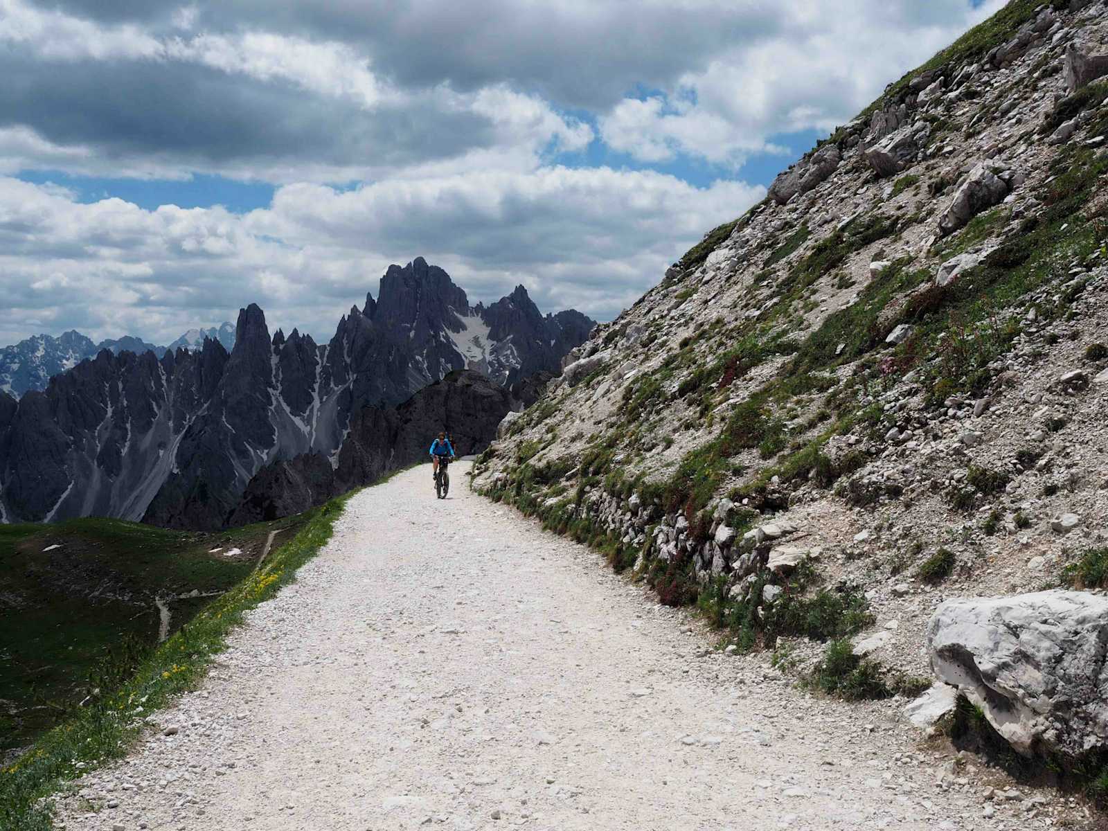 Mit dem Bike ist die Hütte nur über diesen Weg erreichbar, denn ab dem Weg vor der Drei-Zinnen-Hütte besteht aufgrund der vielen Wanderer absolutes Bikeverbot.