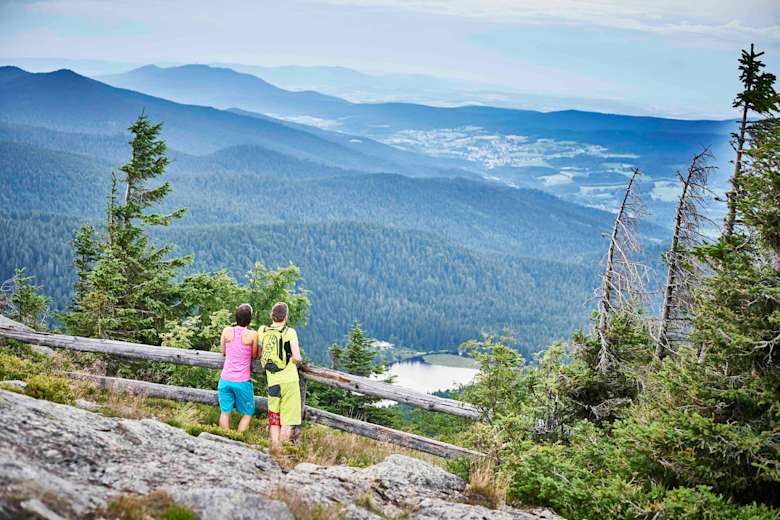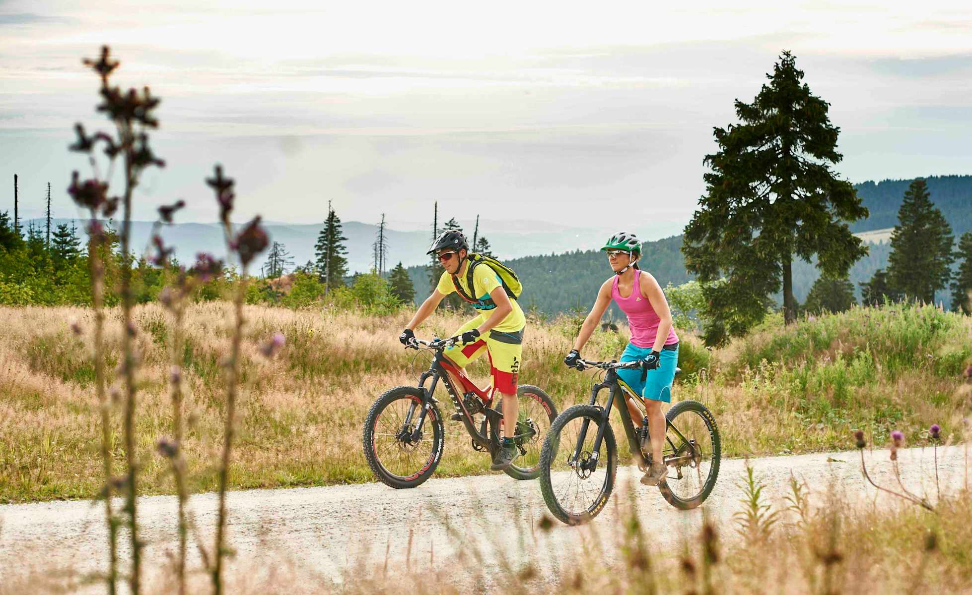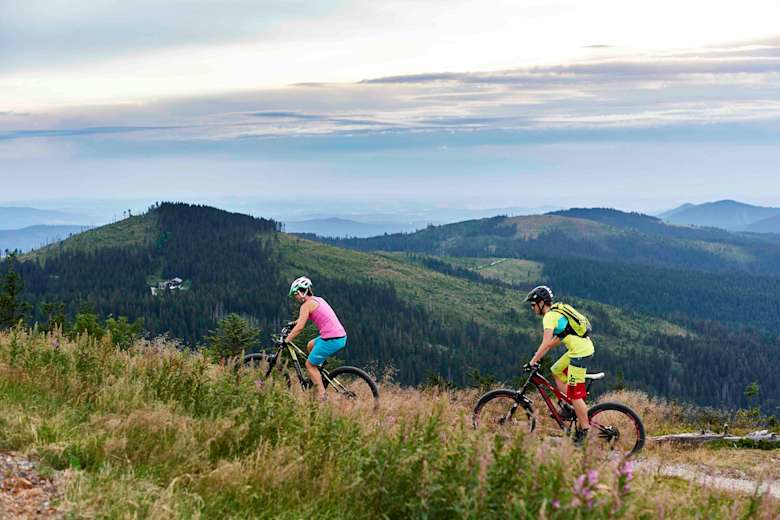 Im Bayerischen Wald kann man nicht nur wunderschön Wandern, sondern das weitverzweigte Wegenetz lädt auch zu ausgedehnten Biketouren ein. Wie zum Bespiel auf den Großen Arber, auf dem sich das Aber Schutzhaus befindet. Eine großartige Aussicht über das Arberland ist garantiert, abwechslungsreiche Forststraßen durch den schöne Wald ebenfalls.