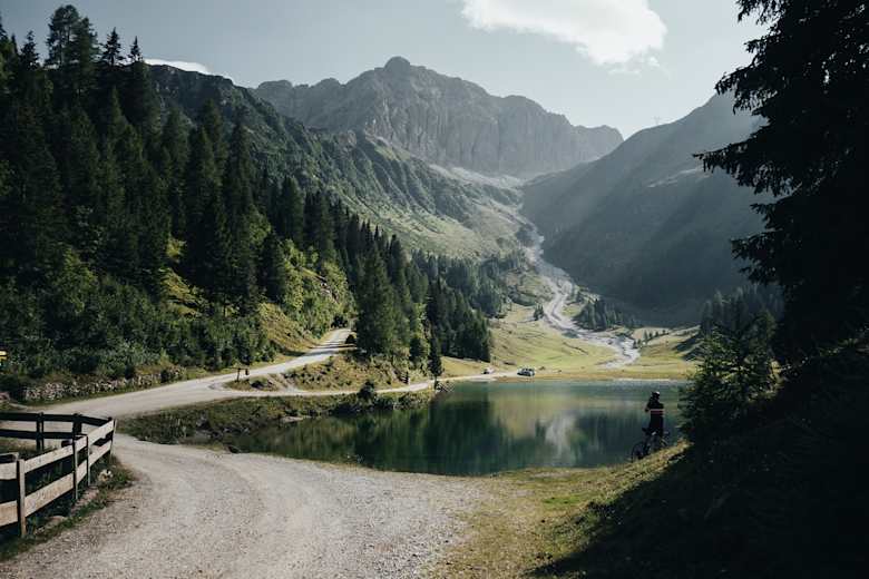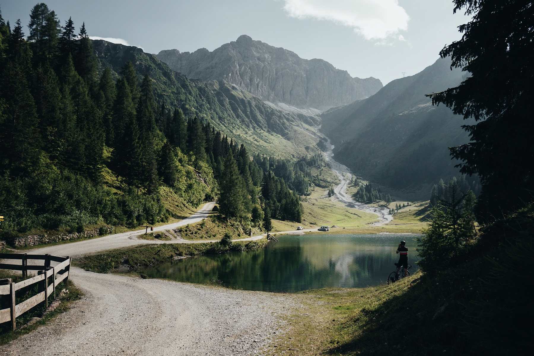 Die Route startet von Sillian aus zunächst auf Asphalt und folgt dem Radweg bis nach Tassenbach. Der erste Abschnitt ist ein ideales Warm-up für die Beine, denn ab Tassenbach werden erstmals Höhenmeter gesammelt – 450 m um genau zu sein. Über mehrere Kehren hinweg geht es die Hauptstraße hinauf in Richtung Sankt Oswald. Diesen kleinen idyllischen Ort lässt man links liegen und fährt, bei stetiger Steigung, die Hauptstraße weiter gemütlich bergauf. Lediglich an windigen Tagen kann dieser Abschnitt etwas mühselig sein. Aber Gravel-Biker sind zum Glück auch geübte Windschattenfahrer.