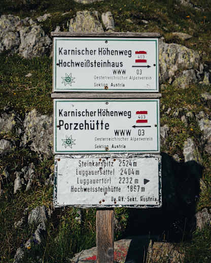 An der Porzehütte angekommen, kann man den fleißigen Beinen entweder eine (kulinarische) Pause gönnen, oder diese zuerst noch zu einem kleinen Abenteuer motivieren – welches die Mühen auf jeden Fall wert ist. Nicht weit entfernt von der Hütte verläuft ein Weg hinauf zum Tilliacher Joch, welches an der Grenze zwischen Österreich und Südtirol liegt und einen wunderschönen Ausblick auf die Sextner Dolomiten bietet.