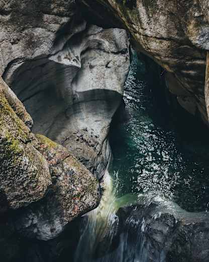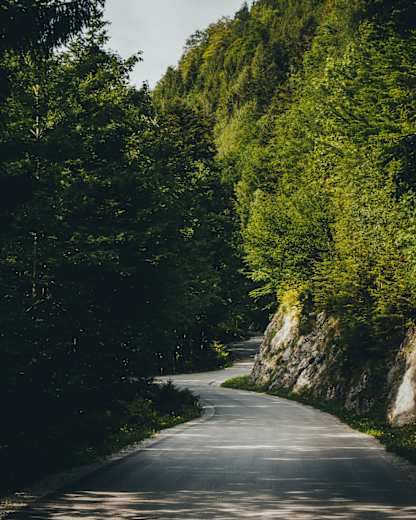Nach einer kurzen Verschnaufpause geht es auf Asphalt weiter – zuerst bergab und anschließend wellig in Richtung Trattberg. Dessen Zufahrtsstraße lässt man jedoch rechts liegen und fährt über mehrere Kehren erneut bergab. Kurz bevor es wieder leicht bergauf geht, biegt man rechts in Richtung Bergalm ab. Man fährt nun durch die idyllische Taugler Strubklamm hindurch, dessen Fluss – die Taugl – man links unten erspähen kann. Wer Zeit hat, kann die Räder kurz abstellen und über einen kleinen Trail zu den imposanten Wasserfällen und Höhlen hinunter wandern. Und nein, der Trail ist nicht fahrbar.