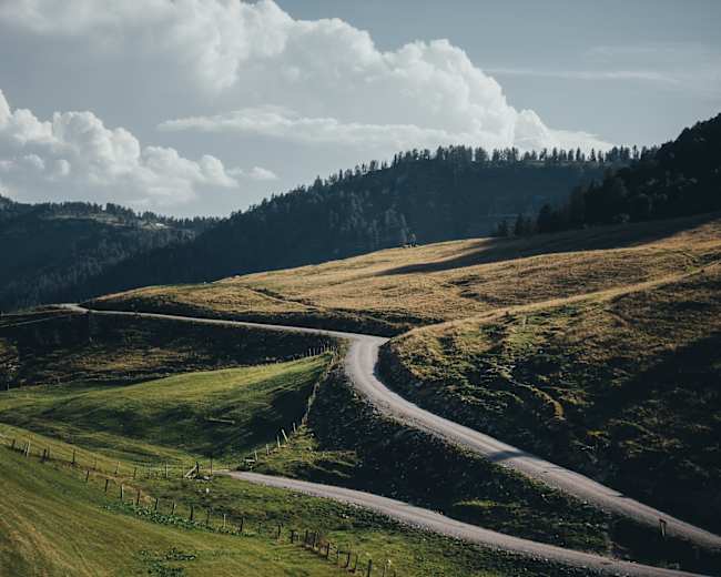 Knapp die Hälfte der Route ist auf Asphalt zurückzulegen, während der verbleibende Anteil nur Schotter und ein bis zwei kurze Schiebepassagen verzeichnet. Um in den Genuss abgelegener Schotterstraßen, beeindruckender Berg Panoramen und malerischen Almen zu kommen, bedarf es lediglich guter Kondition und etwas dickerer Bereifung.