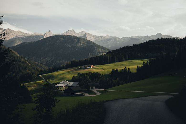 Die Runde startet in Voglau, wo die ersten Höhenmeter auch nicht lange auf sich warten lassen. Auf Asphalt geht es zunächst bergauf durch eine Siedlung hindurch, bis man nach der Querung zweier Brücken scharf rechts abbiegt und den Schildern zum Seewaldsee folgt. Die Route schlängelt sich anschließend über teils steile Kehren an mehreren Bauernhöfen vorbei. Dabei hat man immer wieder einen herrlichen Ausblick auf das Dachsteinmassiv und das Tennengebirge.