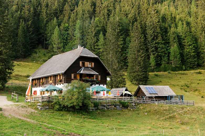 Der Weg führt nun relativ steil durch den Wald aufwärts bis zur bewirtschafteten Bodenalm, die zur Einkehr einlädt. Danach geht es abwärts vorbei am ehemaligen Glasmacherdorf, dem Tscherniheim, und zur Fischeralm, die ebenfalls bewirtschaftet ist.