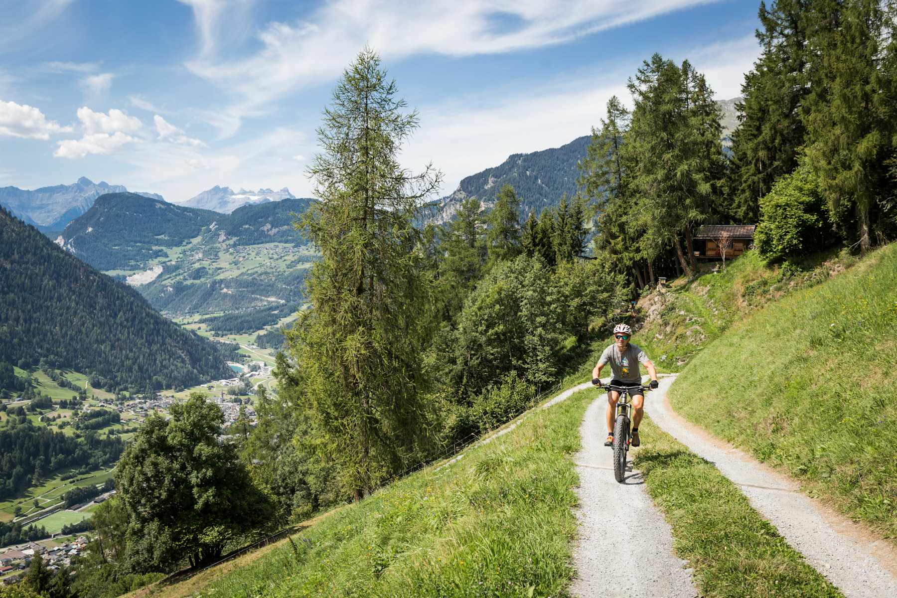 Wer sich die Grand Tour im Wallis vornimmt, macht im wahrsten Sinne des Wortes eine grosse Runde, bei der man von Verbier über das malerische Val de Bagnes nach La Chaux und via Le Château zurückfährt. Unterwegs lohnt ein kurzer Abstecher mit der Gondel auf den Mont Fort (3.328 m), von wo man eine grandiose Aussicht auf die umliegenden Gipfel der Walliser Alpen geniesst. Besonders gemütlich geht es auf der Tour mit dem E-Bike zu.