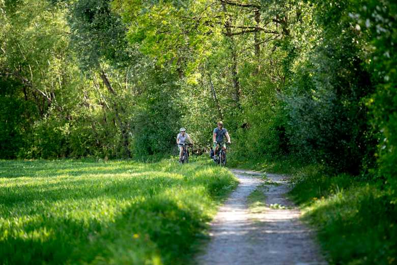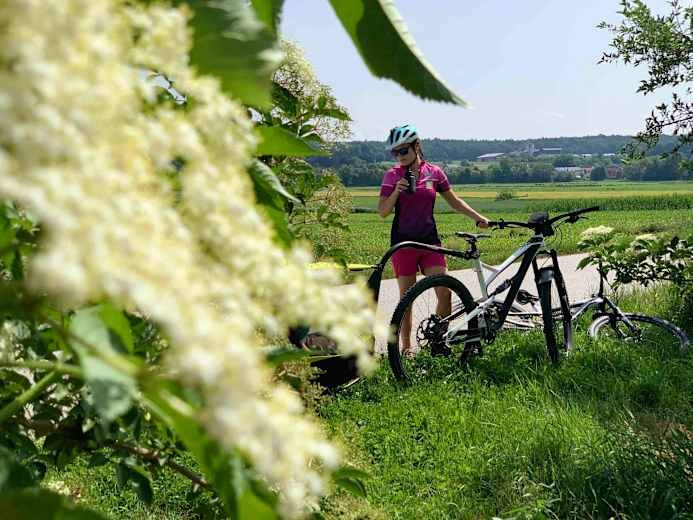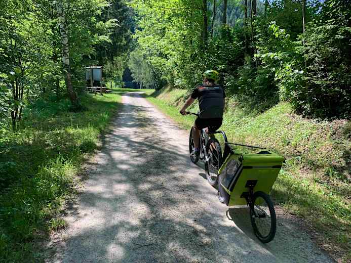 Auf den gemütlichen Wegen kann man auch den Kinderhänger gut mitnehmen. Foto: Superradler Anna und Florian Klein Bildergalerie (7)