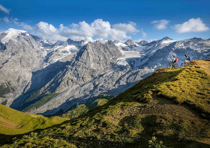 Der zweite Tag auf der TransAlp E-Biketour führt von Scoul in der Schweiz über den Pass Da Costainas und über die Italienische Grenze zum Stilfser Joch. Danach folgt ein super schöner und mit über 2.000 Hm sehr langer Trail abwärts bis nach Trafoi.