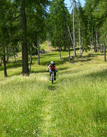 Über den Trida Sattel und schöne Trails geht es weiter zur Alp Trida und hinunter nach Ladet und Compatsch. Kurz vor der Grenze bei der Spießer Mühle kann man von der Straße rechts auf eine Seitenstraße abzweigen. dieser folgt man nun das ganze Spisser Tal entlang, zum Teil durch kurze Tunnel bis zum Finstermünspass, wo man auf den Inntalradweg trifft.