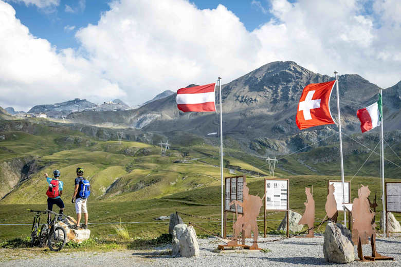 Die etwas leichtere Variante der TransAlp E-Biketour führt am ersten Tag zwar - wie die Originalroute - von Landeck bis Ischgl und hinauf zum Idjoch, aber sie zweigt noch vor dem Zeblasjoch nach links ab und führt über den Trider Sattel hinunter nach Samnaun-Compatsch. Von dort geht es dann immer entlang des Inns bis nach Scoul. Von den vielen Höhenmetern in der Angabe sollte man sich nicht gleich abschrecken lassen, schließlich kann man in Ischgl die Bergbahnen nutzen, um zum Idjoch auf über 2.700 m zu gelangen.