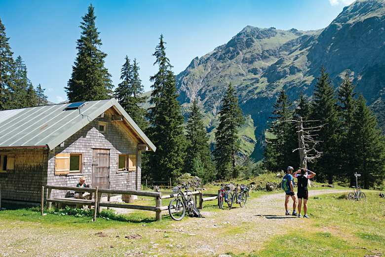 Der höchste Punkt der Tour, die Hintere Entschenalpe am Ende des Fahrwegs durch das Retterschwangtal. Foto: Stephan Baur und Sebastian Baur