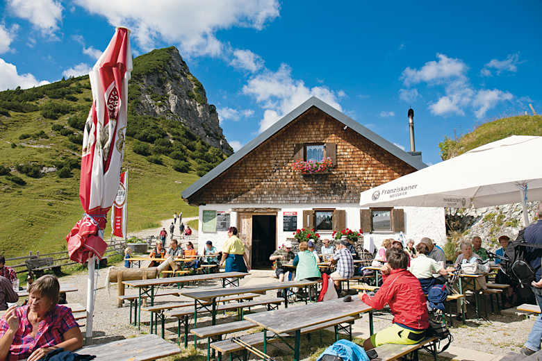 Nach der verdienten Einkehr bietet sich ein Abstecher zu Fuß zum Gipfel der Krinnenspitze oder des Litnisschrofens an.