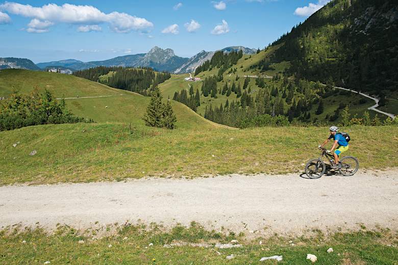 Eine aussichtsreiche Genusstour hoch über dem Tannheimer Tal in den Allgäuer Alpen, die viele Highlights bietet: Auffahrt auf guter Schotterpiste mit humaner Steigung, drei aussichtsreiche und einladende Alpen, einfacher und flowiger Trail (S0), Bike & Hike-Möglichkeit auf die Krinnenspitze.