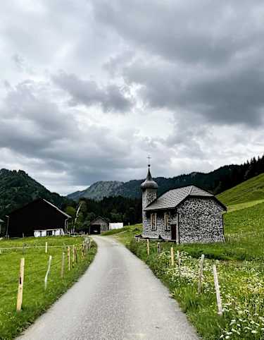Auf ruhigen Nebenstraßen führt die Route dann überwiegend bergab Richtung Hittisau, wo einige empfehlenswerte Einkehrmöglichkeiten warten. Allzu voll sollte man sich den Magen allerdings nicht hauen, denn es warten noch zwei ordentliche Anstiege.