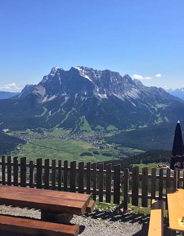 Vor der Abfahrt nach Biberwier empfhielt sich eine Einkehr in der Sunnalm. Die Aussicht von der Terrasse ist großartig.