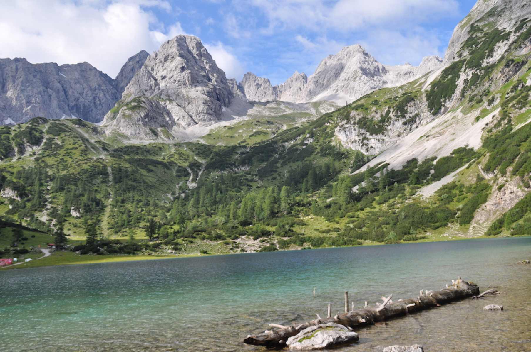 Der Seebensee in der Mieminger Kette ist einer der schönsten Gebirgsseen in der Umgebung. Majestätisch erhebt sich das Zugspitzmassiv auf der gegenüberliegenden Talseite. Die Auffahrt von Ehrwald über die Ehrwalder Alm ist technisch einfach, konditionell aber nicht zu unterschätzen.