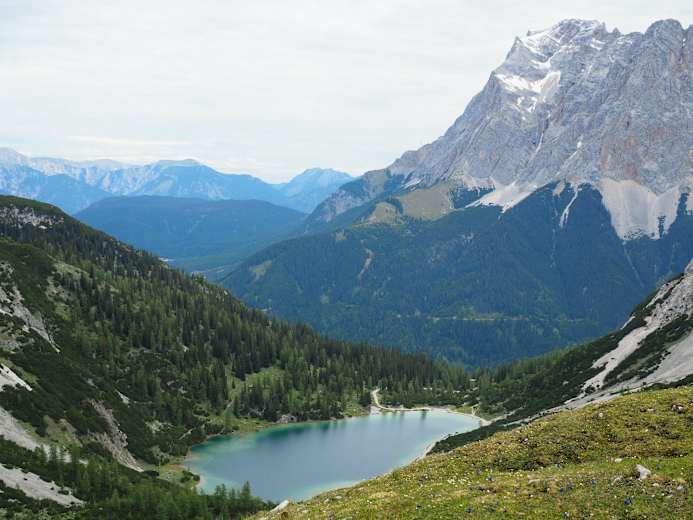 Entlang der Leutascher Ache im Gaistal geht es über die Gaistalalm und die Tilfussalm zum Seebensee und weiter zur Coburger Hütte (1.917 m) mit dem bekannten Drachsenee. Beeindrucken sind aber nicht nur die beiden türkisblauen Seen, sondern auch die Landschaft im Gaistal, sowie die umgebende, teils schroffe Landschaft. Die Tour wird größtenteils mit dem Bike gefahren. Die letzten ca. 250 Hm entsprechen einem Steig, der bis zur Hütte führt.