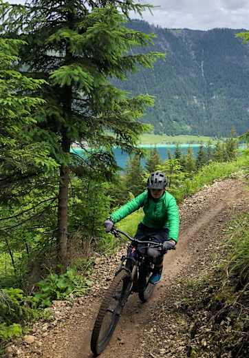 Schöne Mountainbiketour auf die Naggler Alm vom Weißensee in den Gailtaler Alpen. Die Tour bietet nicht nur schöne Aussichten auf den wunderschönen See, sondern auch zwei lässige Abfahrtsvarianten.