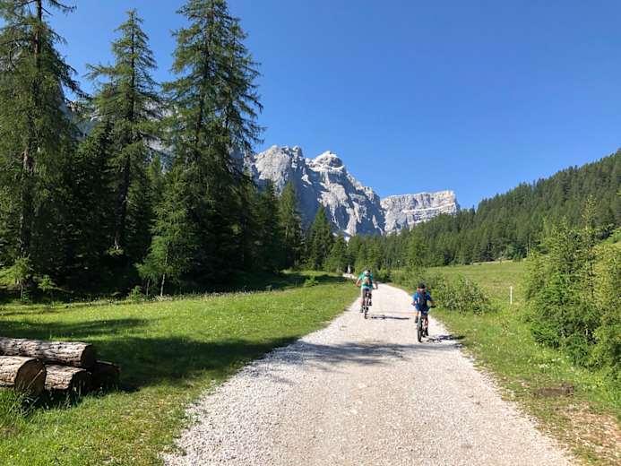 Wer möchte, kann mit dem Bike auch noch weiter bis zur Medalgesalm fahren. Bis dorthin führt ein guter, wenn auch nach der Ütia Ciampcios etwas steiler werdender Forstweg.